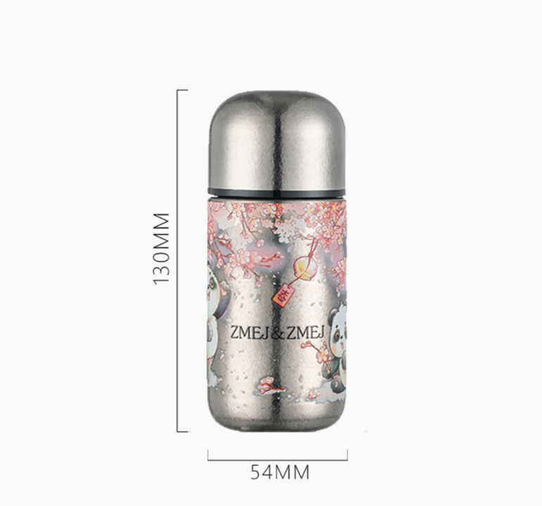 Product Name: Pure Titanium Pocket Mug Material: Pure Titanium Color: Cherry Blossom Panda Capacity: 150ml Net Weight: 110g Gross Weight: 132g Mug Dimensions: Diameter 5.4cm, Height 13cm Box Dimensions: Length 6.1cm, Width 6.1cm, Height 13.8cm Quantity per Carton: 80 pieces/carton