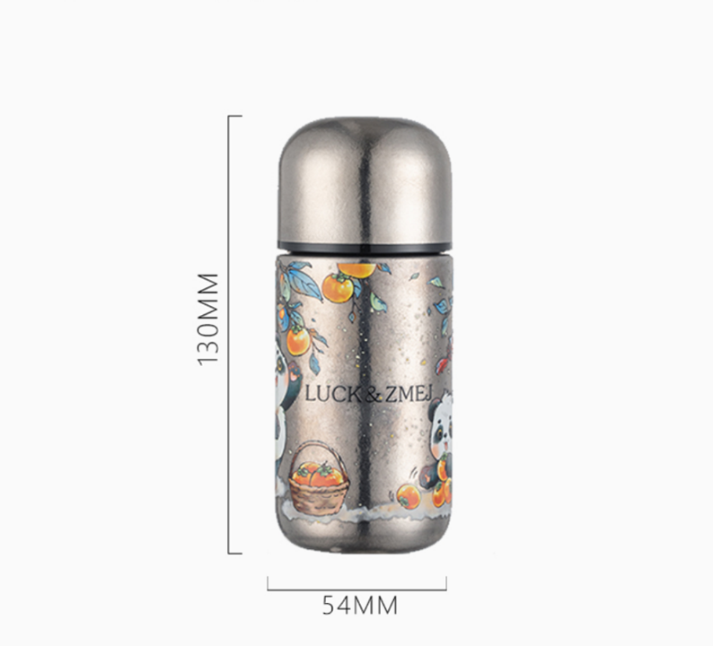 Product Name: Pure Titanium Pocket Mug Material: Pure Titanium Color: Panda Persimmon Capacity: 150ml Net Weight: 110g Gross Weight: 132g Mug Dimensions: Diameter 5.4cm, Height 13cm Box Dimensions: Length 6.1cm, Width 6.1cm, Height 13.8cm Package Quantity: 80 pieces/carton